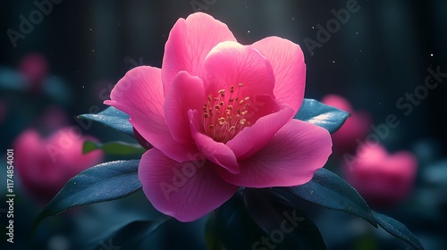 Pink Camellia Flower Blooms in Dark Garden