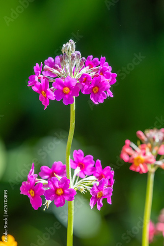 primrose, flower, flowering plant, inflorescence, botany, botanical, growth, garden, gardening, plant, herbaceous, perennial, nature, natural, outdoors, colours, colours, photo, green background, closeup, closeup, flower head, bright, high-coloured, beauty, beautiful, flora, floral, ornamental, pollen, cultivated, pink, pink flower, vertical, summer, summer, summer, blooming, season, day