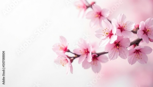 Pink cherry blossom branches against a soft white background, flowers, spring flowers, blossoms