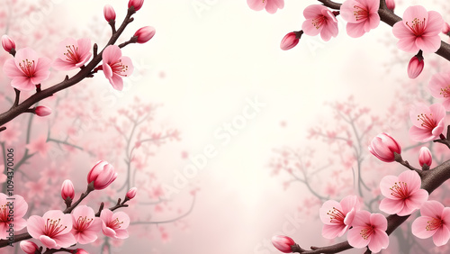 Pink Cherry Blossom Flowers Spring Background. Concept of beauty, nature, and serenity.