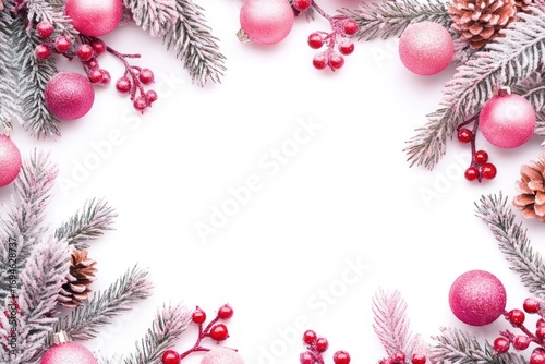 christmas decoration, christmas tree, holiday season, winter holiday, celebration, decoration, red berry, pine cone, aesthetic, christmas, ornament, branch, berry, festive, frosted, holiday, isolate, border, season, winter, cone, frame, photo, theme, pine, pink, red, festival