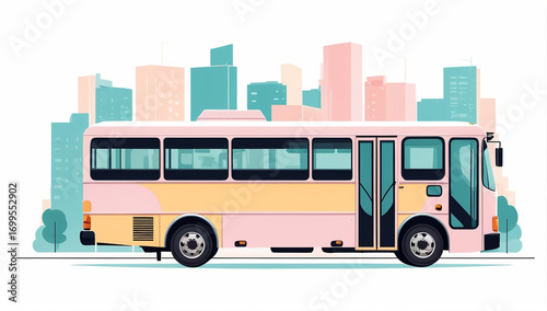 Pink City Bus Illustration Urban Transportation Vector Graphic