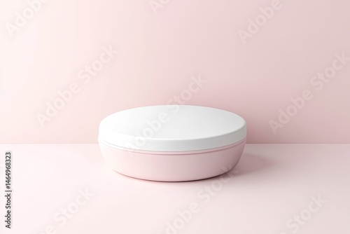 cream, beauty, product, cardboard box, pink, cosmetic, make-up, bottle, container, illustration, modern, minimalist, design, three-dimensional, studio, light, advertising, promotion, presentation, exhibition, display, shelf, round, circle, white, cap, footed, elegant, clean, simple, fashion, skincare, glossy, texture, smooth, sale, aesthetic