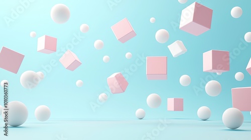 Pink Cubes and White Spheres Floating Against a Blue Background