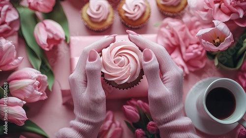 pink, cupcake, flower, tulip, gift, present, hot drink, cup, hand, nail, sweater, sweet, dessert, treat, food, baking, celebration, spring, pastel, soft, elegant, feminine, floral, delicious, romantic, lifestyle, breakfast, brunch, tea, party, birthday, anniversary, love, joy, happiness, peace, beauty, relaxation, serene, blissful, aesthetic, lovely, deliciously, tasty, fresh, bright, sweet, cake, homemade
