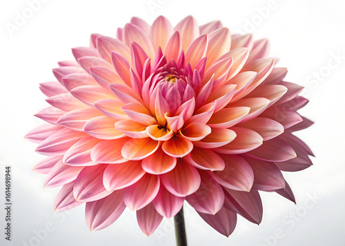 Pink dahlia flower close-up with soft petals in gradient tones of white and vibrant magenta. Flor de dalia rosa en primer plano con pétalos suaves en tonos degradados de blanco y magenta vibrante.