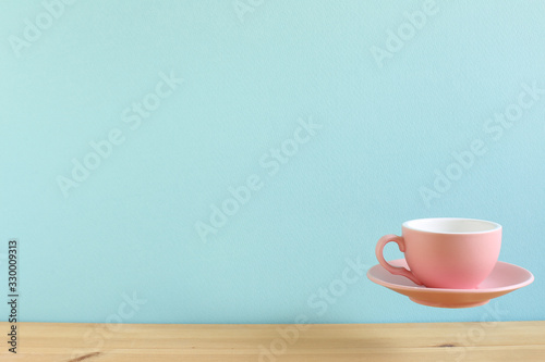 cup, drink, mug, hot drink, cafes, air, art, background, bar, beverage, blue, breakfast, cappuccino, ceramic, closeup, copy, design, dish, empty, espresso, falling, floating, flying, food, isolated, latte, levitation, light, mocha, morning, object, pink, plate, eatery, setting, shadow, shop, single, sky, small, space, style, table, taste, tea, texture, top, unique, view, wooden