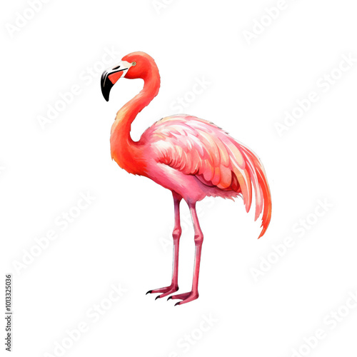 Pink flamingo standing tall with elegant neck curvature, suitable for tropical themed designs, nature concepts, or birdwatching enthusiasts. Generative AI