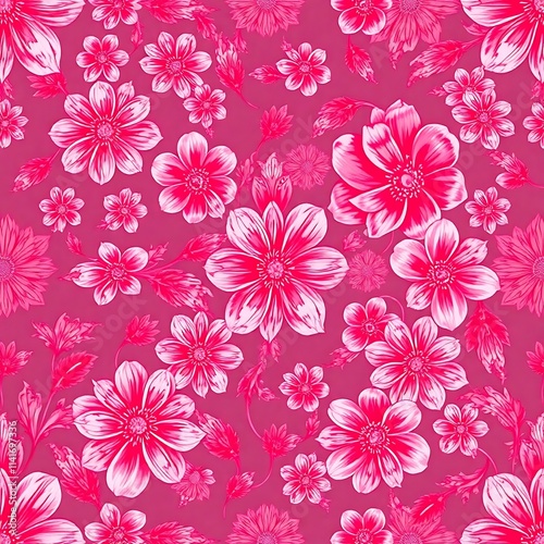 Pink Floral Seamless Pattern: A delicate and enchanting seamless pattern featuring pink and white flowers on a soft pink background. This design evokes a sense of femininity, elegance.