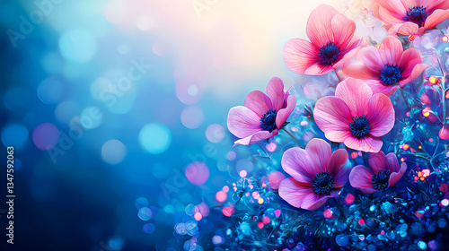 Pink Flower Bloom: Serene Floral Beauty in Vibrant Blue