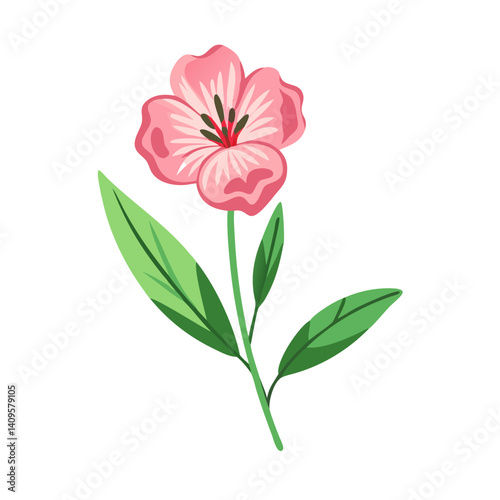 flower, floral, pink, blossom, bloom, leaf, green, stem, plant, nature, vector, illustration, botanical, drawing, isolated, decorative, design, wildflower, spring, summer, flora, gardening, botany, herb, herbal, growth, elegant, artistic, pattern, clip art, graphic, blooming, single flower, pretty
