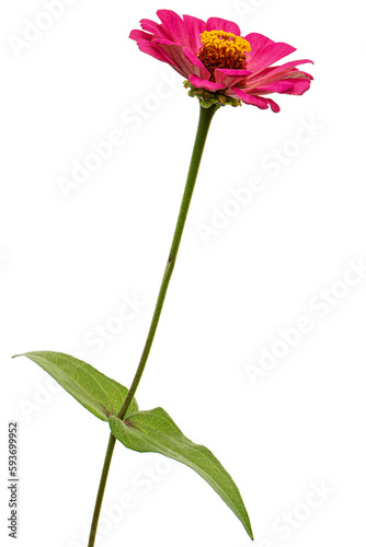 Pink flower of zinnia, isolated on white background