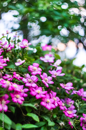 clematis, pink, flower, flower, nature, green, garden, plant, purple, brash, spring, blossom, summer, bloom, beauty, flora, red, field, grass, floral, season, colours, blooming, closeup, outdoors, macro, leaf, shrub, background, beautiful, bokeh, bright