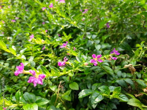 pink flowers in the garden, pink color cuphea hyssopifolia flowers.