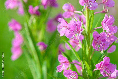 Pink flowers of fireweed (Epilobium or Chamerion angustifolium) in bloom ivan tea. Flowering willowherb