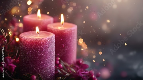 candle, pink, glistering, festive, bokeh, light, warm, magical, scene, ambience, glow, sparkle, holiday, christmas, new, year, celebration, romantic, decoration, beautiful, soft, bright, fire, light, flames, burning, wax, wick, dark, background, abstract, still, life, art, photo, photo, image