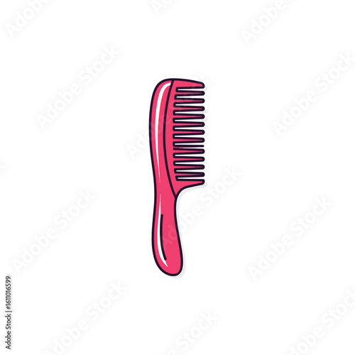 comb, hair, pink, illustration, vector, cartoon, grooming, beauty, hair care, styling, accessory, hygiene, plastic, simple, isolated, white background, doodle, drawing, icon, graphic, flat, bright, colourful, salon, hairdresser, barbershop, cosmetic, routine, daily, woman, girl, children, children, fashion, domestic, household, object, tool, equipment, essential, hairbrush