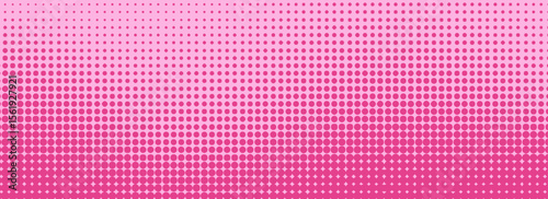 Pink halftone pattern. Retro comic gradient background. Rose pixelated dotted texture overlay. Cartoon pop art faded gradient pattern. Vector backdrop for poster, banner, advertisement