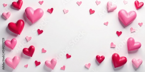 Pink hearts scattered on white, Valentine's Day backdrop , celebration, illustration, romantic