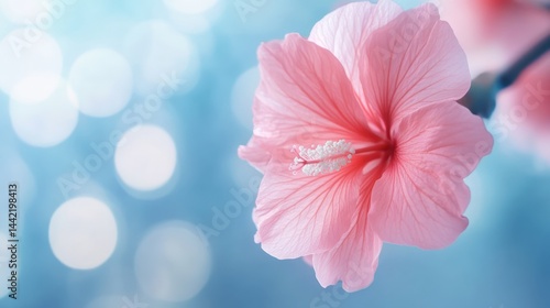 hibiscus, flower, pink, bloom, floral, blossom, plant, nature, tropical, spring, summer, beautiful, macro, closeup, fresh, bright, white, stamen, background, soft, delicate, light, garden, leaf, flora, botany, beauty, vibrant, romance, peaceful