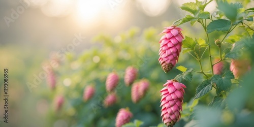 vine, hop, xanthous, pink, sprouting, factory, germinating, salmon, peach, growing, hop, manufacturing, plant, factory, cone, mill, outdoors, apricot