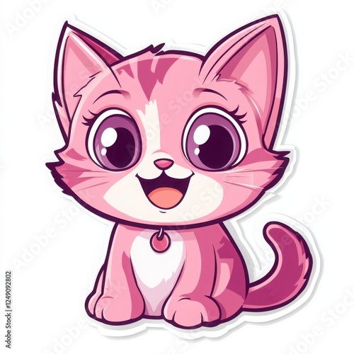 kitten, cartoon, pink, cat, cute, adorable, cheerful, happy, big eye, purple, joyful, playful, sweet, charming, lovely, friendly, fluffy, cuddly, pet, animal, illustration, graphic, design, character, mascot, manga, anime, children, children, baby, wallpaper, artwork, art, drawing, digital artwork, image, picture, vector