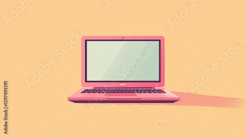 laptop, computer, technology, digital, cyberspace, online, work, pink, modern, design, flat, illustration, graphic, pastel, background, colours, image, art, style, simple, visual, graphic design, drawing, color palette, presentation, poster, texture, light, shadow, digital artwork, computer illustration, minimalist, design element, tech, contraption, device, equipment, tool, office, workstation