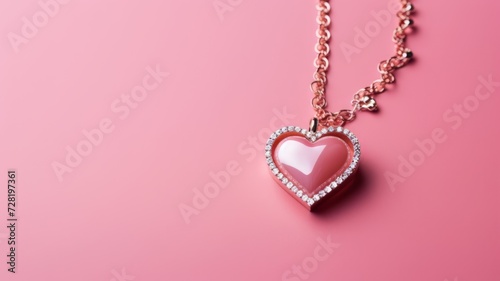 Pink love heart shaped necklace isolated on pink background. Happy valentines's day background concept.
