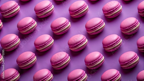 Pink Macarons on Purple Background A Sweet Pattern, Macarons, Pattern, Purple, Food