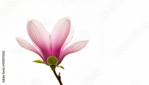 Pink magnolia flower blooming against a soft white background