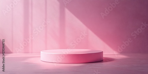 Pink Minimal Pedestal Display for Product Showcase with Soft Lighting and Pastel Background