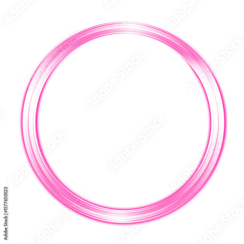 Pink neon light lines frame, high speed moving circle light, glowing rays, laser light lines