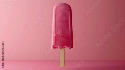 pink popsicle on a stick against a matching pink background, capturing a minimalist and vibrant summer treat concept, 3D illustration. Contains copy space.