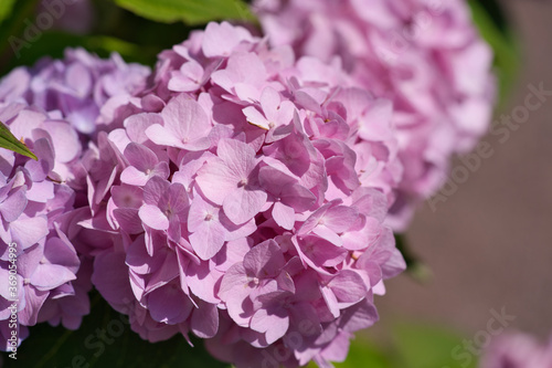 Pink pretty hydrangea on a sunny day
