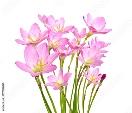 Pink rain lily flower, Pink flower blooming isolated on white background, with clipping path