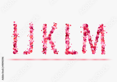 Pink rose petals alphabet. Part 3 Letters I, J, K, L, M.