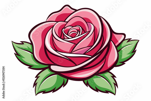 rose, pink, red, white, green, flower, flower petals, leaf, bloom, blossom, bud, floral, nature, garden, romantic, love, beauty, elegance, delicate, soft, vibrant, colours, illustration, art, design, graphic, cartoon, stylised, isolated, background, simple, single, closeup, detail, high-coloured, bright, botanical, stem, growth, fragrance, aroma