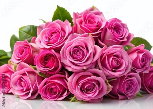 Pink Roses Bouquet Isolated on White Background, Copy Space for Text and Design, Floral Photography