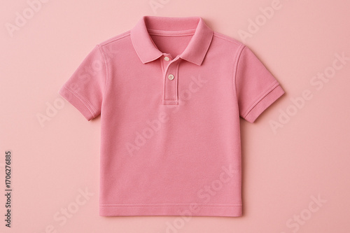 pink shirt isolated on light pink. Pink polo shirt on pastel pink background.