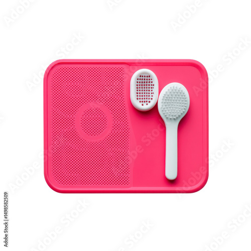 Pink Silicone Cleaning Mat with White Cleaning Tools for Face and Skin Care