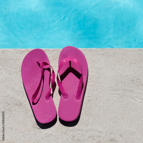 Pink slippers near swimming pool