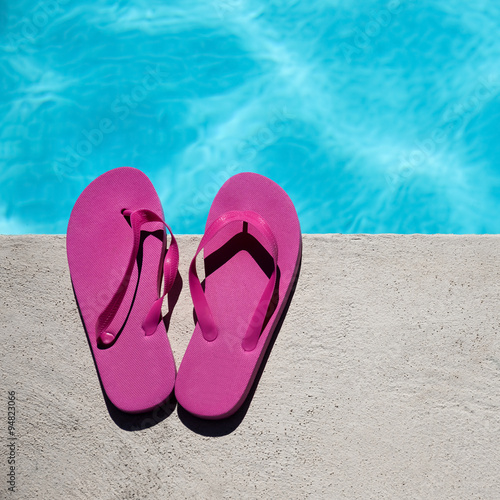 Pink slippers near swimming pool
