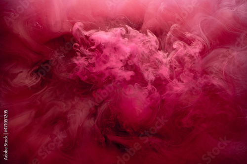 Pink smoke on black ink background, colorful fog, abstract swirling touch ocean sea, acrylic paint pigment underwater
