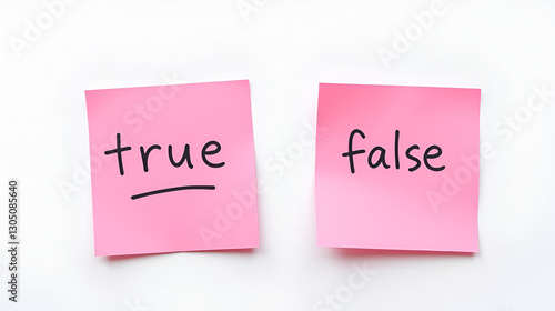 sticky, note, post-it note, true, false, isolated, white, background, truth, business, writing, notepad, message, office, board, fact, idea, concept, notice, label, post, signs, lie, symbol, sticker, paper, empty, advertisement, pad, pink, newspaper, wallpaper, word, system, search, reality, research, news, information, evidence, communication, media, pin, stationery, choice, notepaper, text