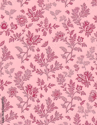 Pink toile fabric pattern, studio lighting, with white tones