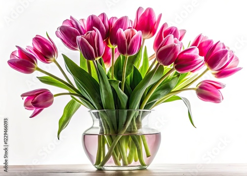 Pink Tulip Bouquet Silhouette in Glass Vase - AI Photo