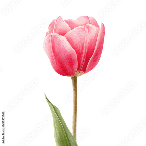 flower, tulip, pink, blossom, bloom, botanical, illustration, art, vibrant, colours, nature, spring, garden, single, elegant, pretty, beauty, floral, detail, design, high-coloured, shade, light, dark, green, leaf, stem, vertical, isolated, closeup, realistic, drawing, graphic, picture, image, decoration, ornamental, plant, fresh, springtime