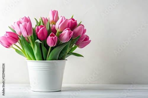 tulip, pink flower, bouquet, spring flower, bucket, white background, minimalist, photo, floral, fresh flower, isolated, copy space, arrangement, still life, modern, design, decoration, nature, beauty, spring, easter, floral arrangement, floral pattern, pink tulips, home decor, interior design, floristry, gift, present, floral arrangement, closeup, macro, high-quality, realistic, detailed