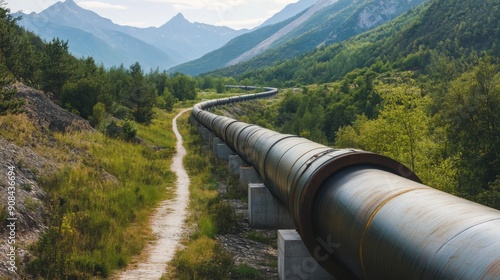 pipeline, mountain, vale, pipe, nature, green, path, tree, landscape, forest, rural, industrial, infrastructure, outdoors, hill, ground, sky, horizon, grass, field, meadow, foliage, countryside, scenery, environment, steel, metal, construction, engineering, transport, utility, energy, power, natural, scenic, wide, long, day, cloudy, bright, daylight, curve, curved