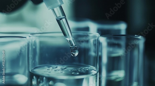 Pipette adding liquid to glass beaker in lab